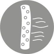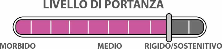 Telaio perimetrale in tubo rettangolo 50X25, asolato per ricevere 14 listelli in faggio la- mellare 68X8, inseriti nel tubo con passo differenziato nella zona lombare e tenuti da speciali guarnizioni di polietilene.